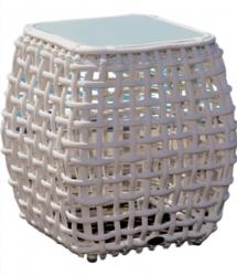 * Material* Frame: White wash Aluminum Weave: White Mushroom color White/Clear Tempered Glass Top